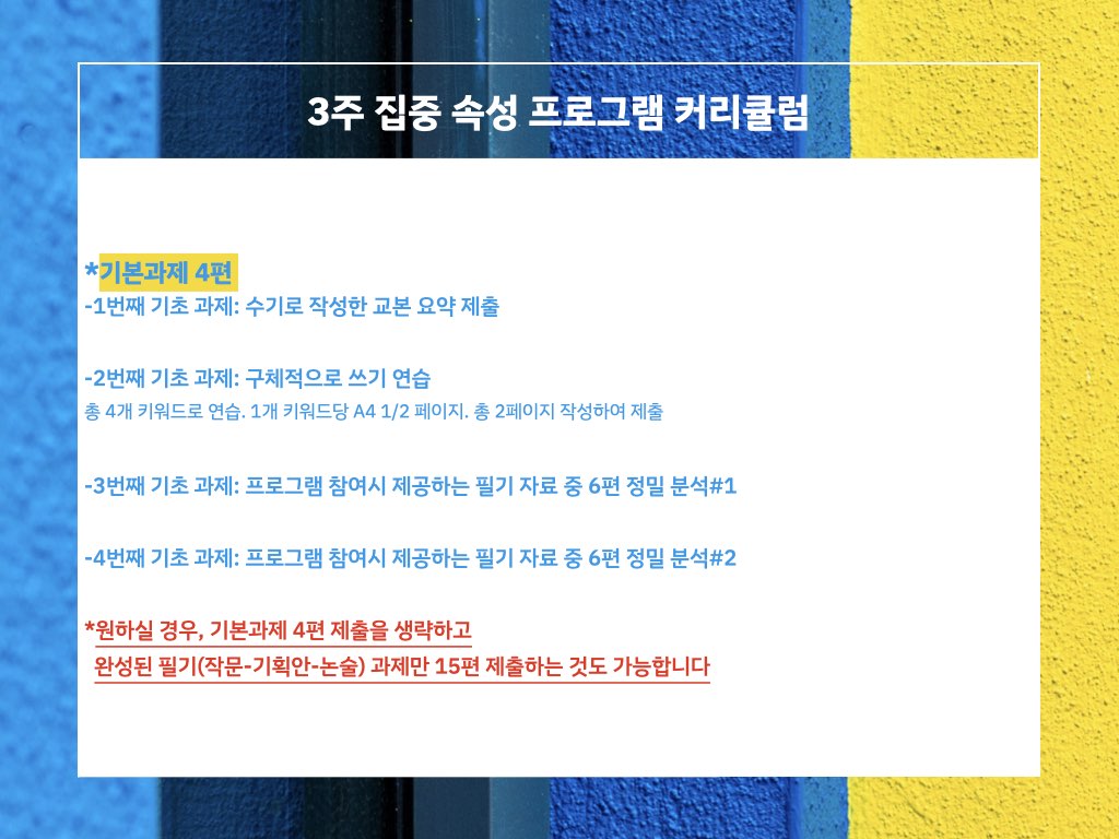본 프로그램은 독보적인 필기 레퍼런스와 엄격한 과제 관리제를 운영합니다