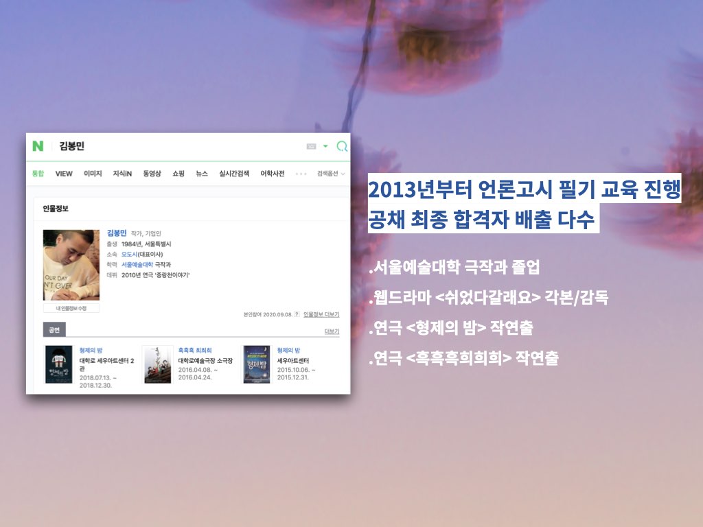 그리고 2013년부터 언론고시 필기 교육을 진행해오면서